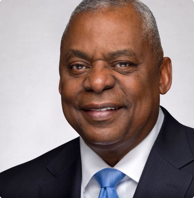 Austin led the Pentagon through unprecedented modernization and maturation, preparing the department for global competition in Asia and addressing the rise and ubiquity of autonomous and AI-enabled weapons systems. He also created pathways to drive private capital to national security priorities. Austin draws on more than 40 years in the U.S. Army, retiring as the four-star general commanding U.S. and coalition forces in the Middle East and South Asia.